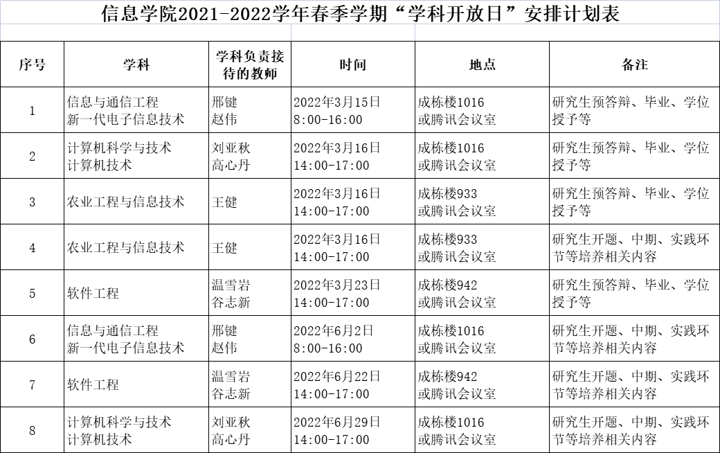 信息与计算机工程公司“学科开放日”安排计划如下: