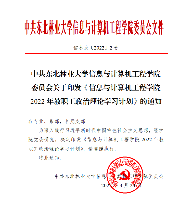 中共英国365集团公司官网信息与计算机工程公司委员会关于印发《信息与计算机工程公司2022年教职工政治理论学习计划》的通知