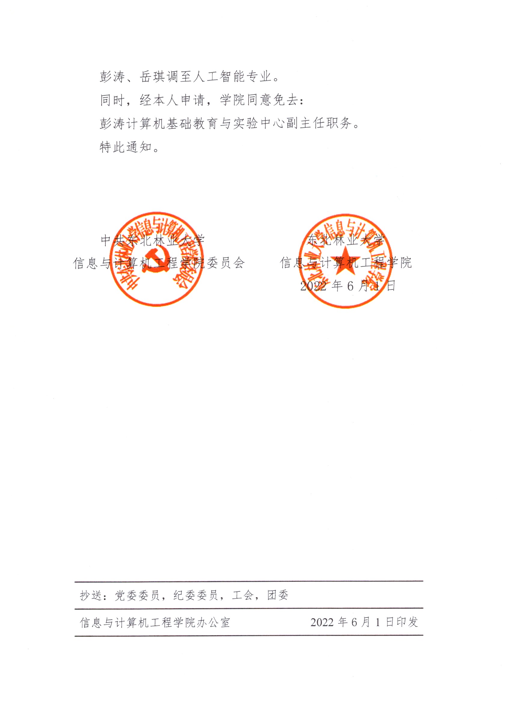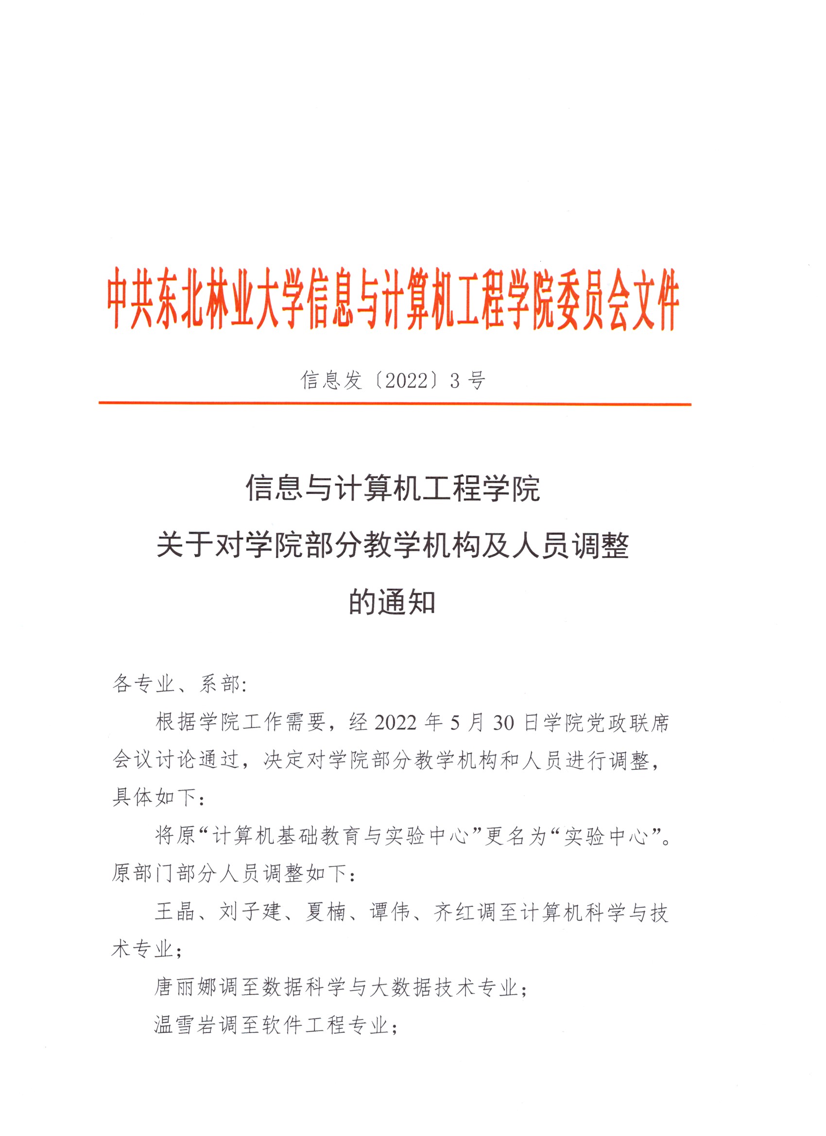 信息与计算机工程公司关于对公司部分教学机构及人员调整的通知