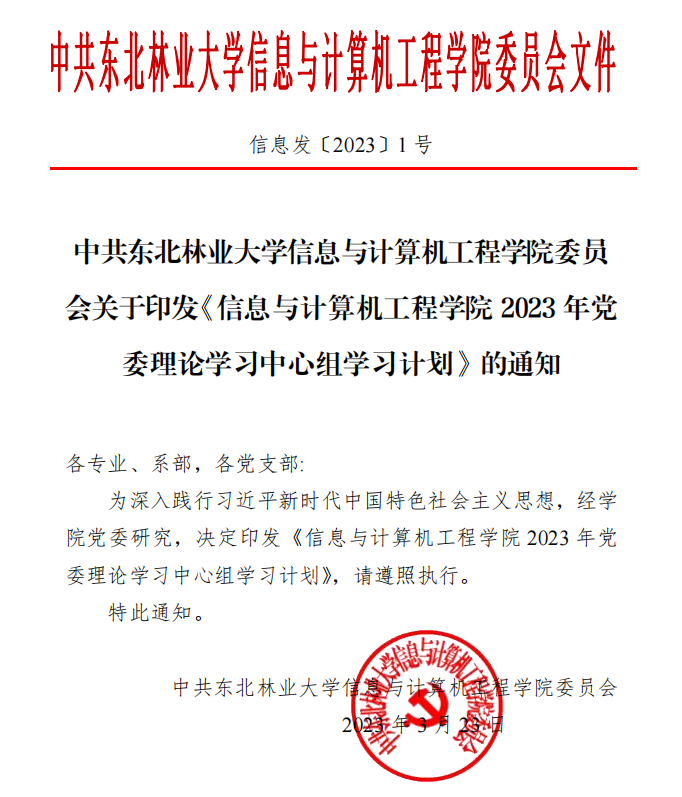 中共英国365集团公司官网信息与计算机工程公司委员会关于印发《信息与计算机工程公司2023年党委理论学习中心组学习计划》的通知