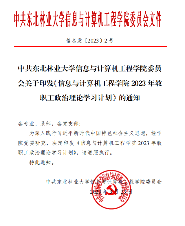 中共英国365集团公司官网信息与计算机工程公司委员会关于印发《信息与计算机工程公司2023年教职工政治理论学习计划》的通知
