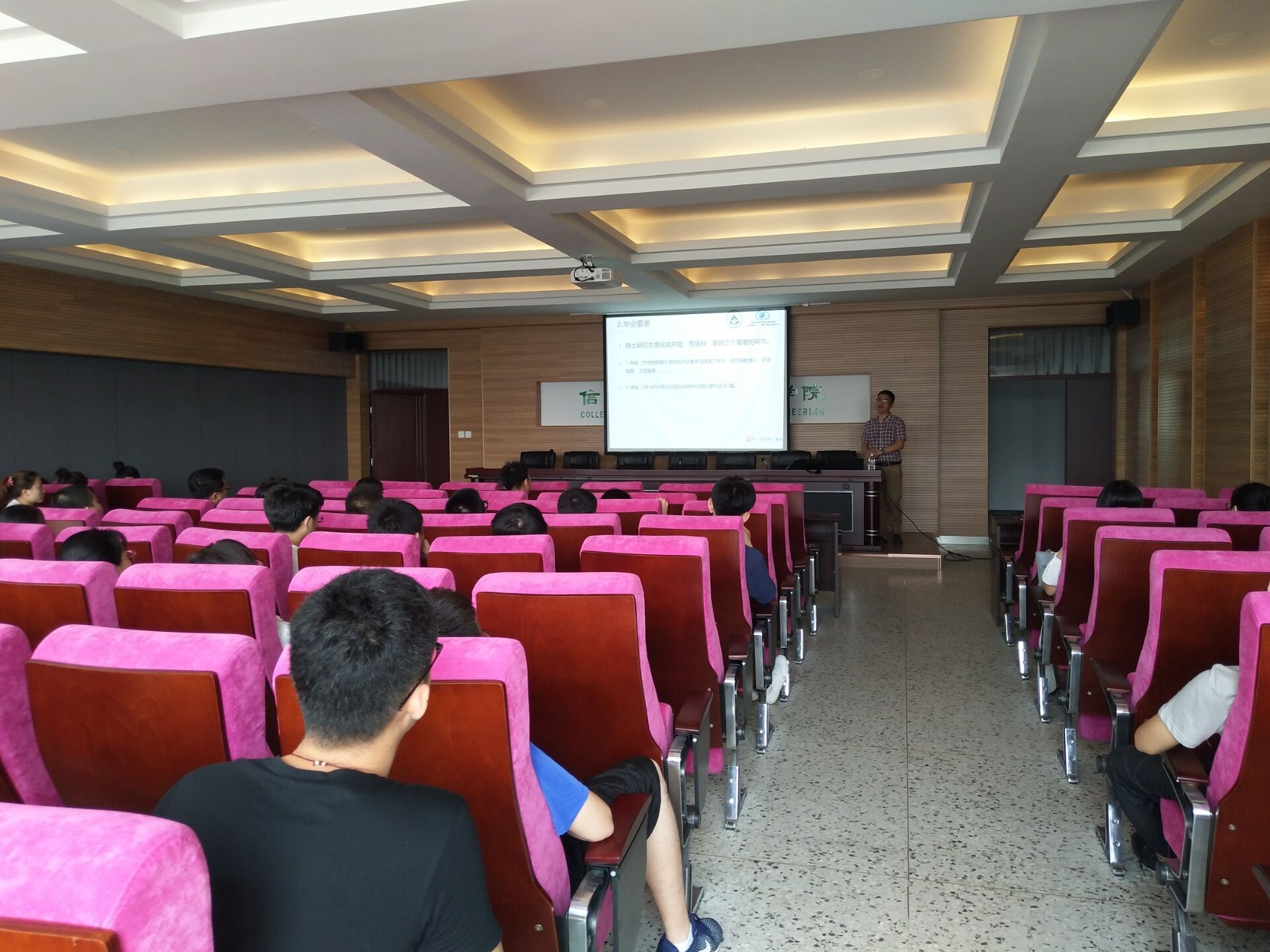 2017年7月6日上午9时信息公司在成栋楼1016学术报告厅召开研究生毕业要求说明会。参加会议的有信息公司副经理景维鹏、研究生辅导员李婧坤和2018年即将毕业的博士、硕士研究生。