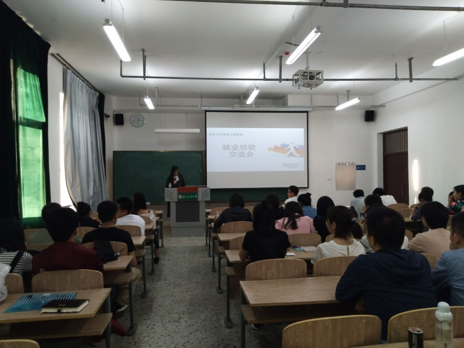 6月7日18时信息公司在成栋楼205举办了“中国梦 点亮未来”研究生就业经验交流会。为了让研究生更好了解如何择业、如何在就业的时候提升自身竞争力,信息与计算机公司研究生党支部与研究生会共同邀请了关于考博、就业、考公务员等五位经验丰富的毕业生来为大家指点迷津。
