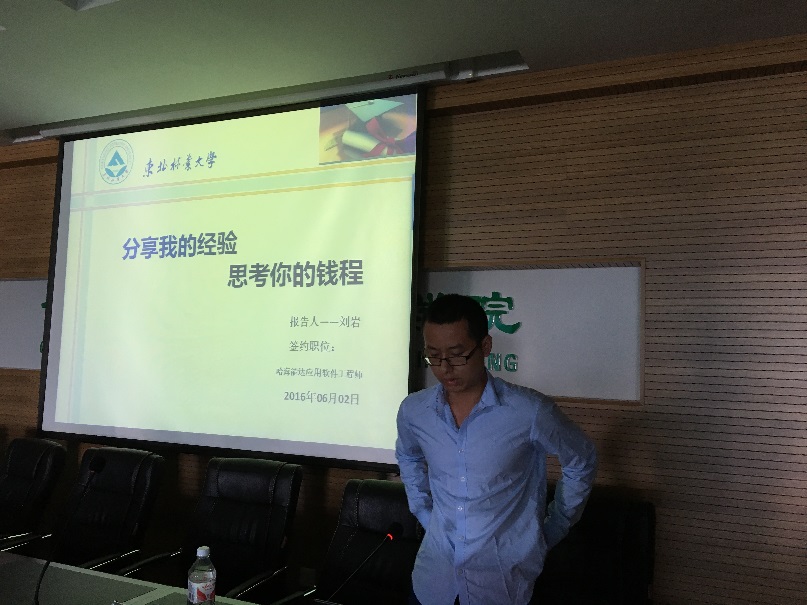 2016年6月2日下午2时,信息公司研究生优秀毕业生就业经验分享会在成栋楼1016会议室成功举办。本次活动邀请了优秀毕业生代表向东、张雪、隋政文和刘岩分享他们的就业经验,参会的有14级、15级全体研究生和部分16级已被录取的研究生。