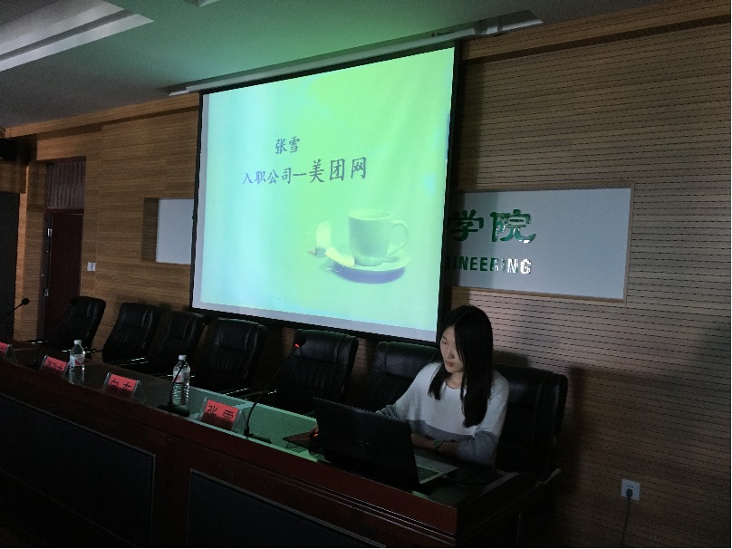 “几年前的一次偶然邂逅,成就了研究生生活的充实岁月。每一个走过的脚步都是一次美好的尝试,每一次成功都来自一种传承的积淀。他们虽然即将毕业离去,但却留下一个个关于青春、关于梦想的故事。”经验分享会在主持人信息公司研究生会主席陈雨佳同学精彩的开场白中拉开序幕。首先由签约百度的向东同学为大家介绍实习与就业之间的关系,面试的技巧,让大家明白就业项目的重要性。然后由签约美团网的张雪同学为大家介绍自己的学习方法,“温故而知新”、“今日事今日毕”,让大家懂得基础才是决定日后高度的关键。而后为大家分享经验的是签约腾讯的隋政文同学,他告诉我们HR并不是那么难以对付,坦然面对每一个问题,把自己学会的知识踏踏实实的回答出来,那么“BAT”离我们并不遥远。最后刘岩同学为即将面临找工作的15级同学们分享了对于人生目标的理解,自己选择什么样的生活方式都需要做好准备,同时分享了自己的求职趣事,他说“做好之前几位所说的,也许找工作就是无心插柳柳成荫的事。”