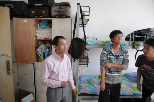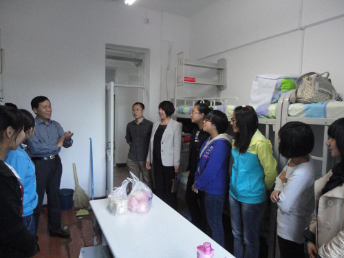 2013年9月17日下午四时,由公司陈广胜经理、岳金龙书记分别带队,带领公司班子成员、政工干部等走访了2013级新生寝室,为每位新生带去了公司中秋佳节的节日问候,并为新生同学发放了公司准备的月饼、水果等节日礼物。