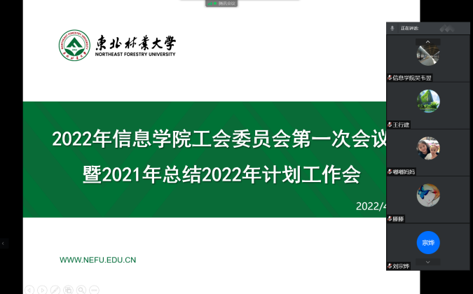 为更好地关心和维护工会会员的权益,全心全意为基层、为职工服务,增强基层工会的活力,把工会建设成为暖心的“职工之家”,4月27日,信息与计算机工程公司工会以腾讯会议形式召开了“2022年工会委员会第一次会议暨2021年总结2022年计划工作会”。公司党委书记钟蕾、办公室主任吴韦翌、辅导员刘宗烨和全体工会委员出席了会议,会议由工会主席黄英来主持。