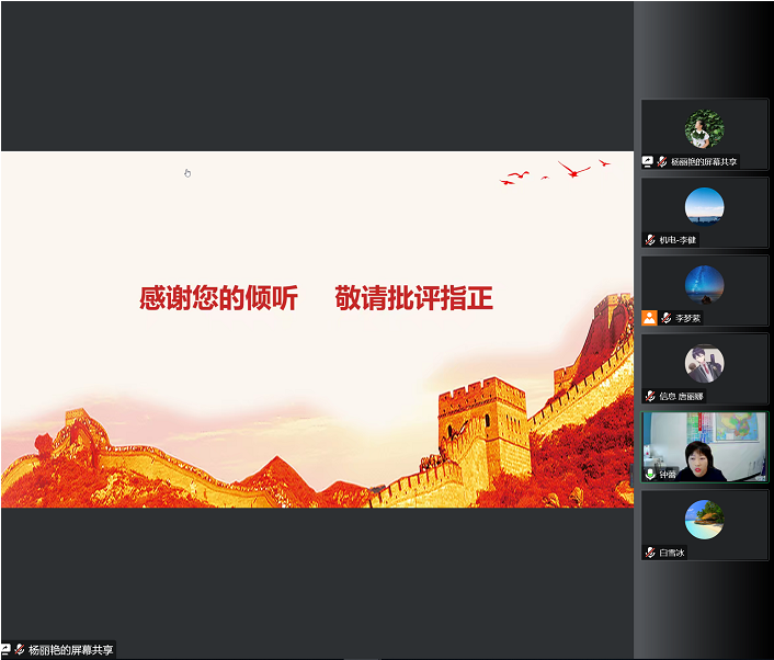 12月7日下午,机电公司和信息公司联合组织开展党的二十大精神宣讲会,会议邀请公司宣讲团成员、马克思主义公司教授杨丽艳做了题为“以真理之光照亮复兴之路”的专题宣讲。会议以线上的形式举行,机电公司和信息公司全体教职工参与学习。会议由信息公司党委书记钟蕾主持。