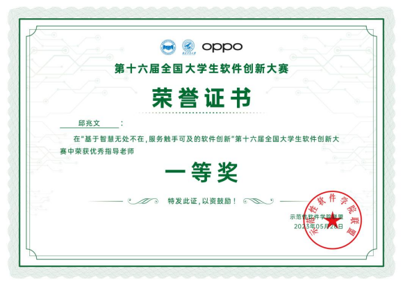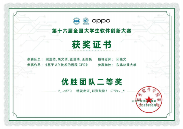 2023年5月29日,由示范性软件公司联盟主办,西北工业大学承办,OPPO支持的第十六届全国老员工软件创新大赛圆满落幕。本次大赛以“智慧无处不在服务触手可及”为主题,参加决赛的30支队伍经过激烈角逐,最终大赛共产生一等奖队伍5支,二等奖队伍10支,三等奖队伍15支。其中公司英国365集团公司官网软件工程专业邱兆文老师指导的两个作品“全心脏自动建模系统”和“基于AR技术的远程CPR”分别荣获一等奖和二等奖,邱兆文老师荣获优秀指导教师一等奖。