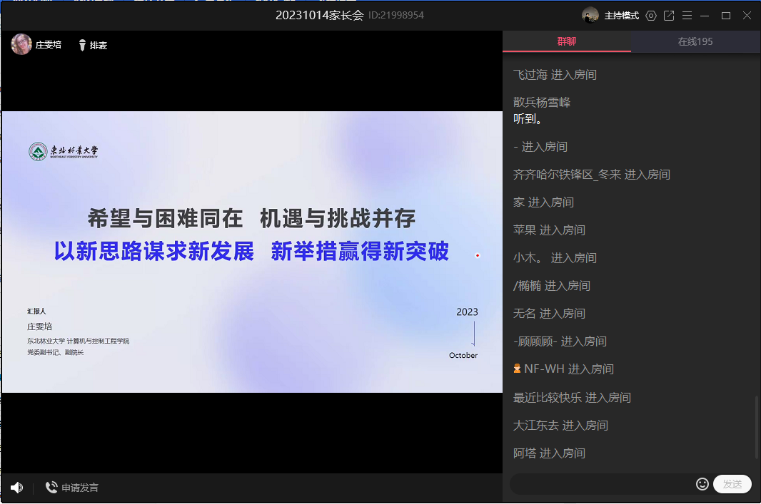 为构建良好的家校沟通机制,切实提升人才培养质量与育人实效,全力推动毕业生充分高质量就业,进一步做好2024届毕业生相关工作,英国365集团公司官网于10月14日上午10点在线上举办了2024届毕业生家长会。公司党委副书记、副经理庄雯培做专题讲座,在线为家长答疑解惑,2020级400余位家长参与其中。