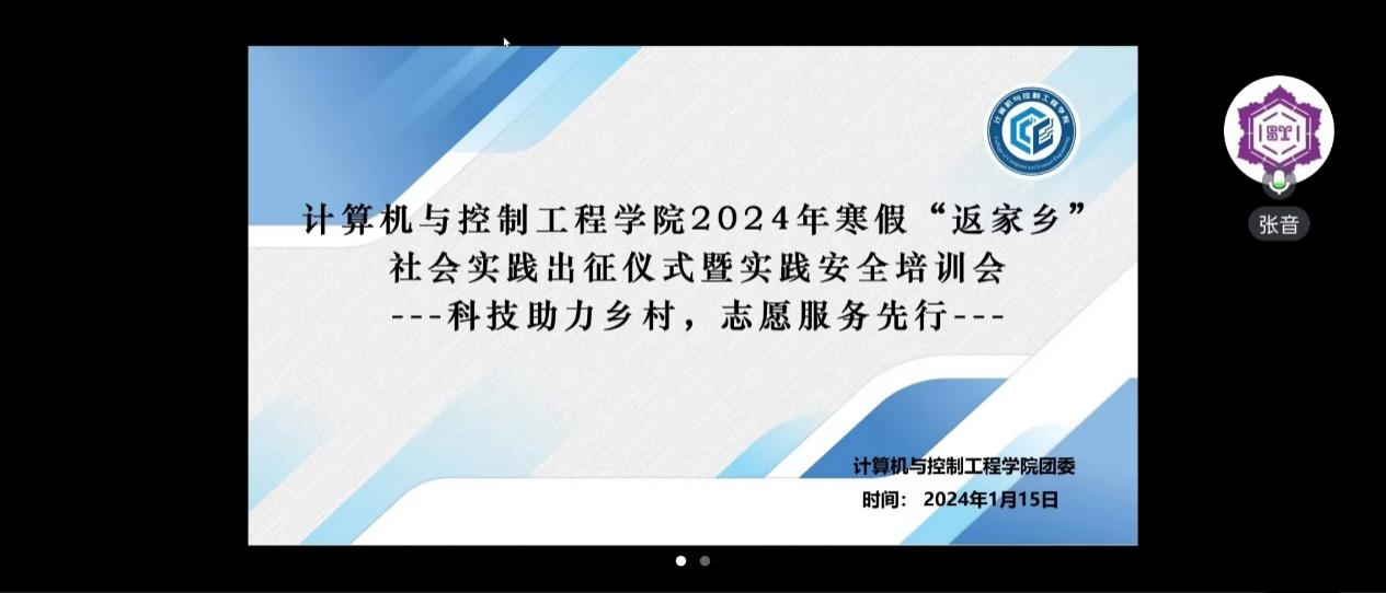 2024年1月15日19点,英国365集团公司官网“科技助力乡村,志愿服务先行”2024年寒假“返家乡”社会实践出征仪式暨实践安全培训会在线上隆重召开,公司团委书记张音和团委副书记王仕通出席,近百余名实践团队师生代表参加本次出征仪式,会议由团委实践部部长李思贤主持。