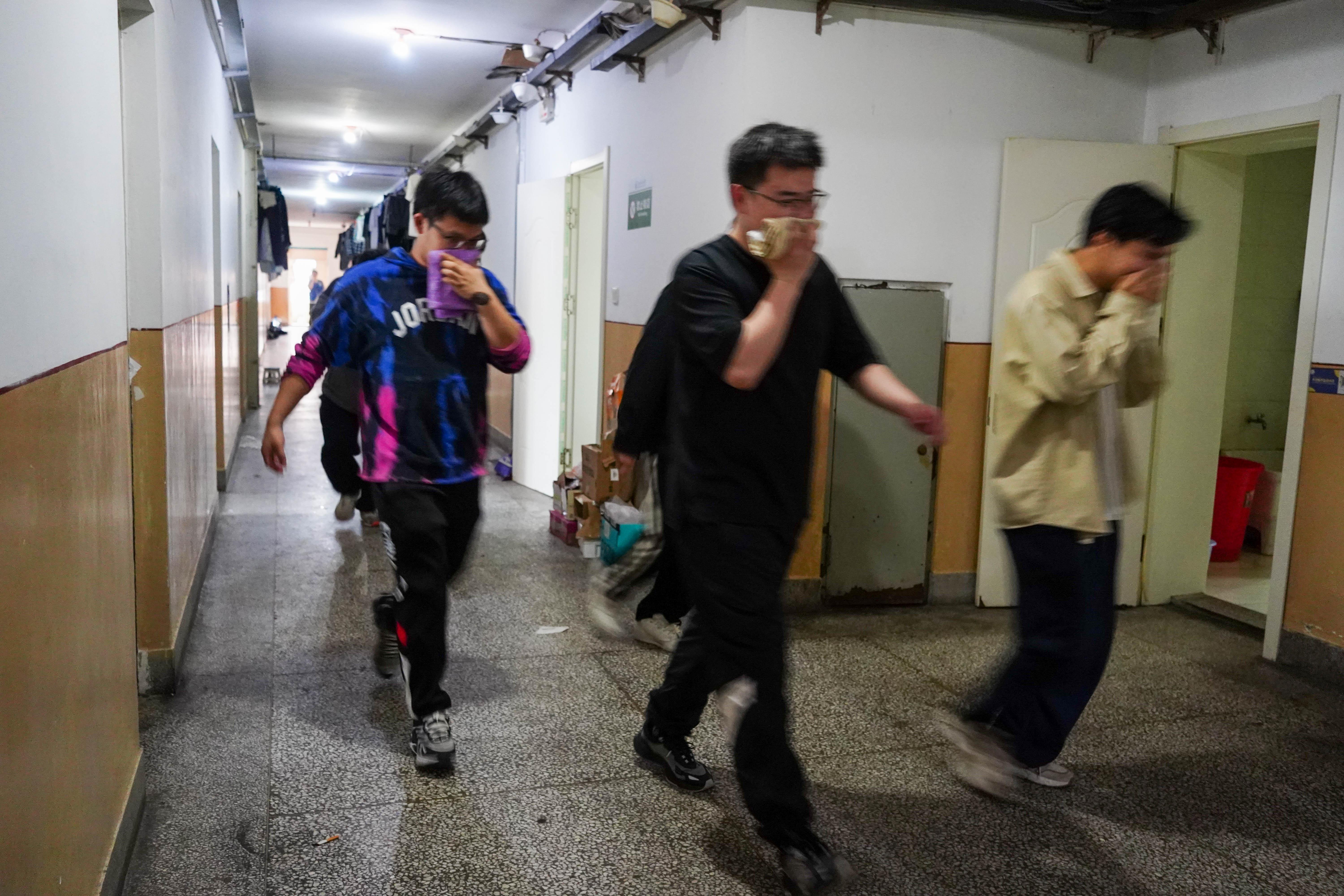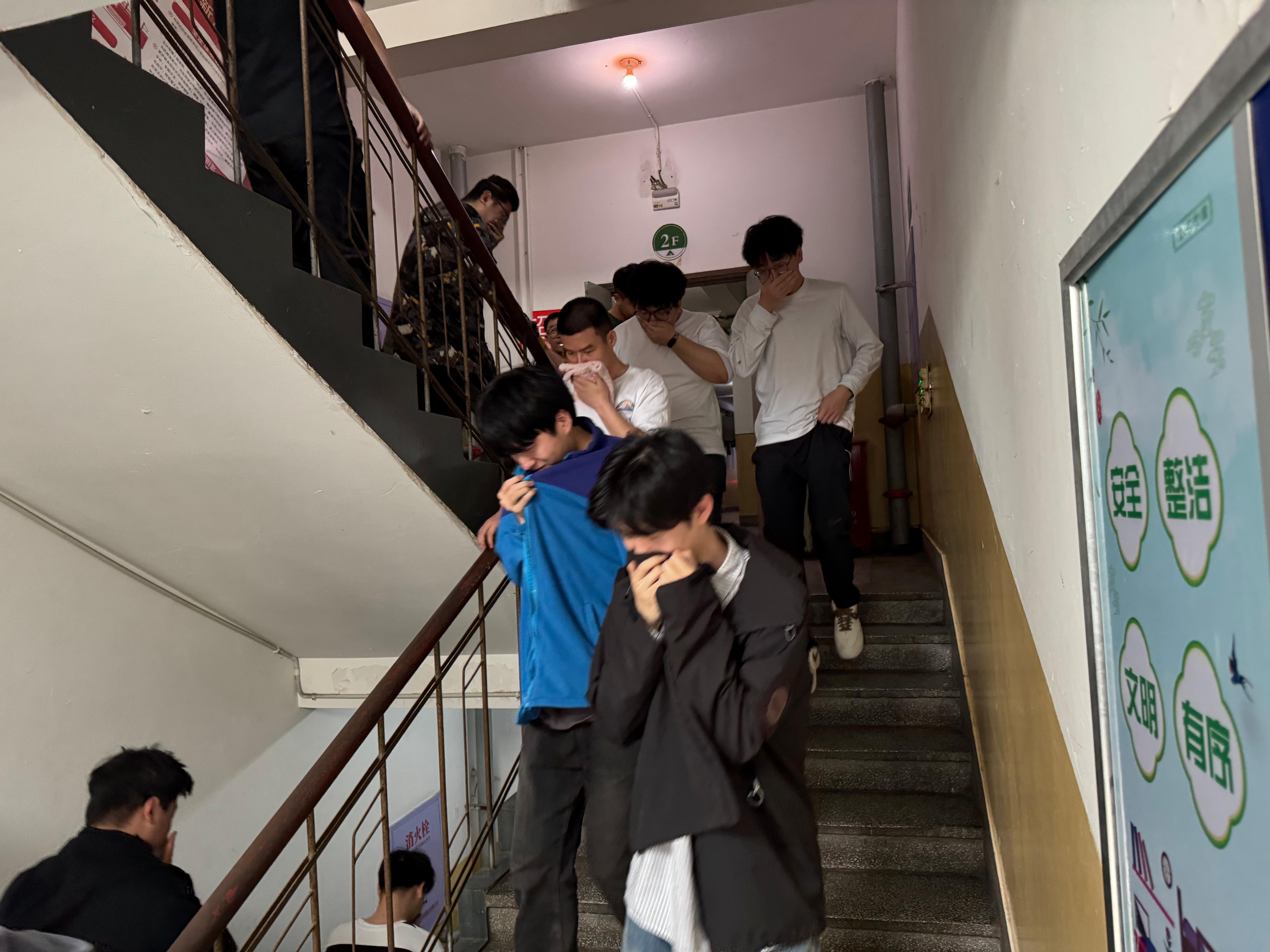 演练开始前,保卫处消防安全监督管理科负责人王宇新对火灾逃生疏散演练进行指导和讲解,他讲到面对火灾反应要迅速、行动要敏捷、决策要正确。下午14:10分,随着消防火灾警报声的响起,各楼层安全员迅速到达指定地点,沉着冷静地指挥员工用湿毛巾捂住口、鼻,尽量将身体放低,从安全疏散通道紧急撤离公寓楼。全体员工在指定时间内安全、快速、有序地撤离到了安全地点。