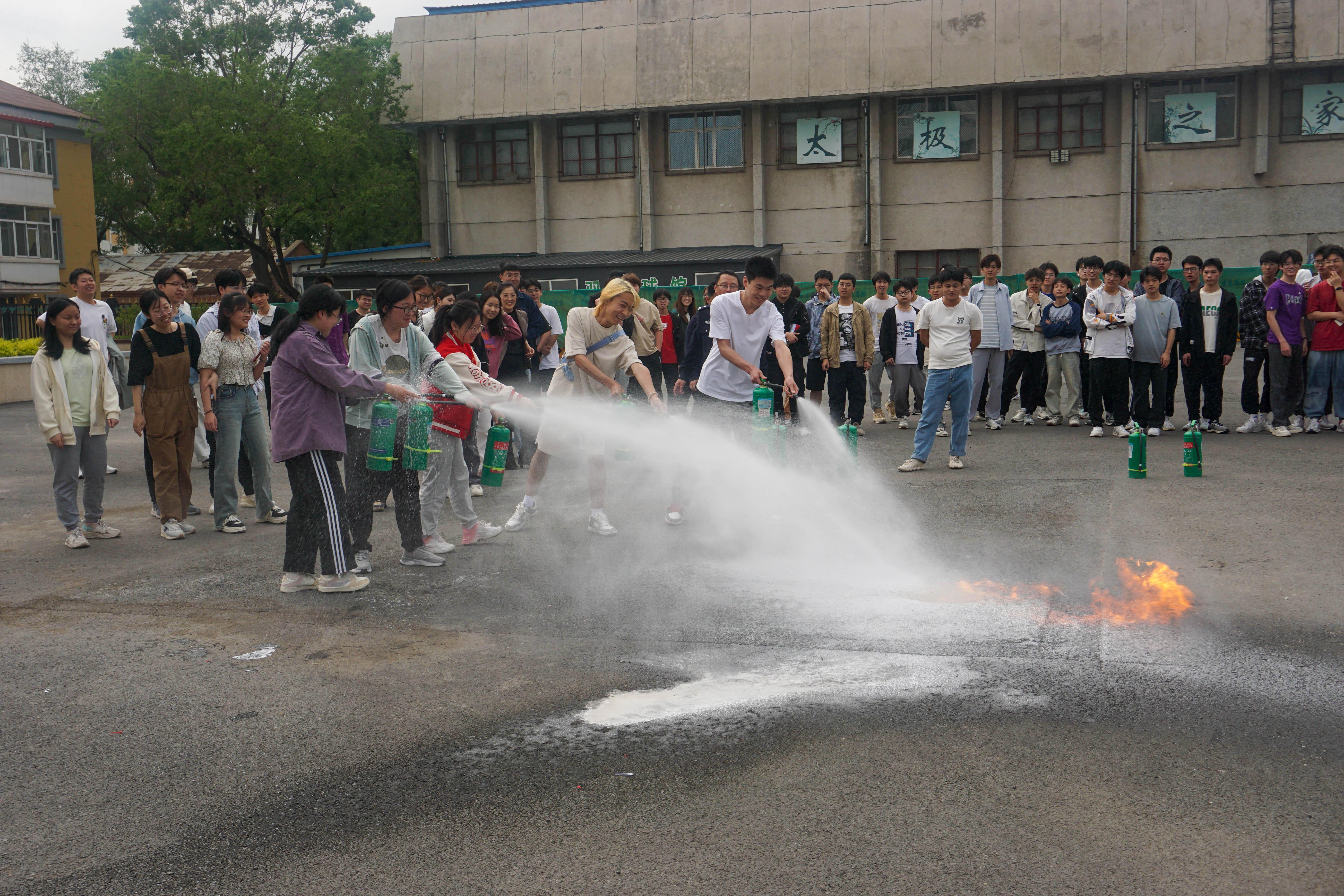 随后,王宇新对消防器材使用方法进行了讲解和实操,并一对一指导正确使用消防器材。讲解完成后,消防员点燃演练火源,师生每组10人按照“提、拔、瞄、喷”程序,在上风口距离明火3米距离操作灭火器灭火。