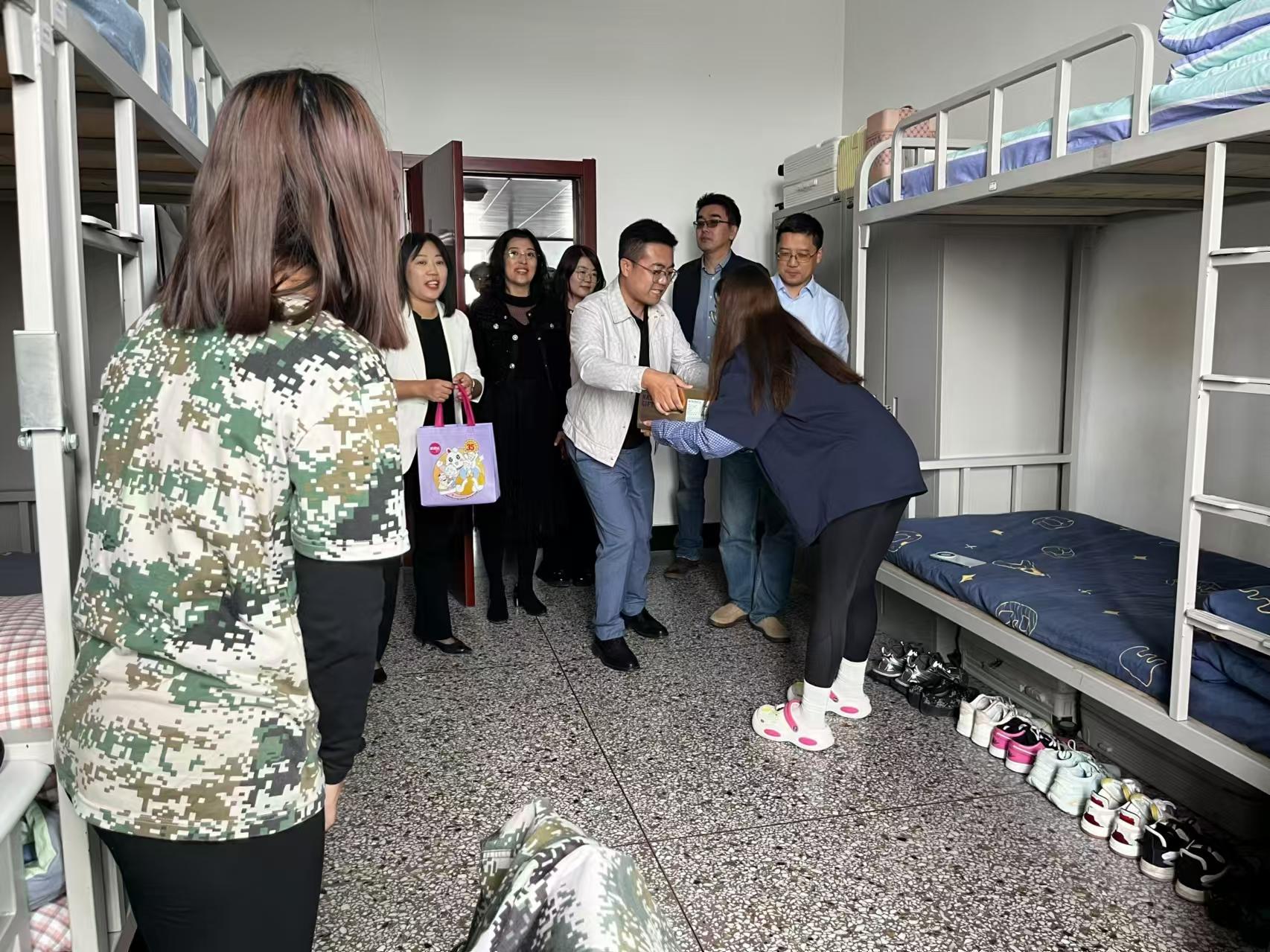 “同学们,中秋快乐!”公司党委书记钟蕾、经理汪国华一进寝室便亲切问候同学们,“家是哪里的?”“刚入校感觉怎么样?”走访过程中,院领导和老师们将月饼和水果递送到员工手中,并详细询问新生到校后的生活适应情况,现场解答新生遇到的问题和疑惑。钟书记勉励同学们要珍惜美好的青春时光,扎实学好专业知识,努力提高综合素养;汪经理叮嘱同学们要增强安全意识,加强体育锻炼,保持阳光、积极、乐观的心态,以崭新的精神面貌迎接老员工活。