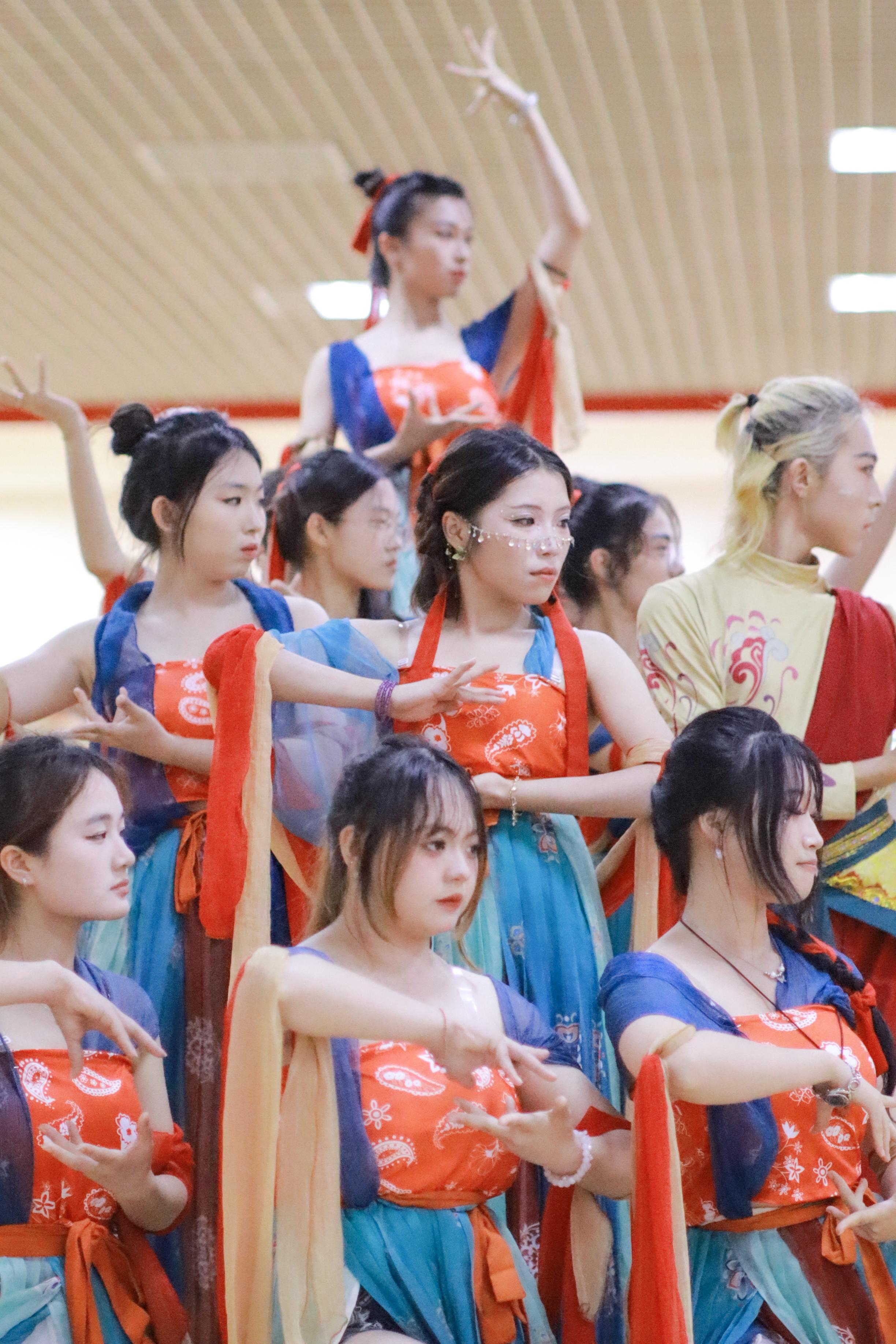 “角声吹彻梅花,胡云遥接秦霞。白雁西风紫塞,皂雕落日黄沙。”敦煌之美从古至今深入人心。翠笛,红袖,衣袂飘飞:袖带,白纱,千年壮美。每一哥脚步,都是无数次的磨练,每一拍的变换,都是璀璨文化的展现。选曲,编舞,排练;失误,进步,完美表演。每一位成员都倾尽全力,牺牲自己的休息时间,刻苦努力,为观众呈现出一场视听盛宴。