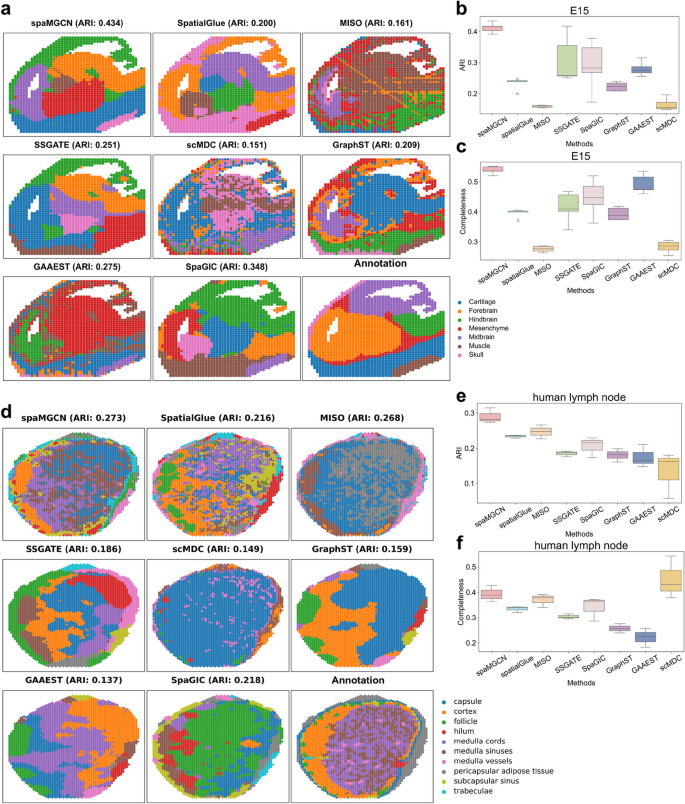 识别空间域是分析空间转录组学数据的关键步骤之一,是理解组织异质性的基础。传统方法大多使用单一组学数据识别空间,然而,单组学数据中包含的信息量是有限的,尤其是在组织结构复杂的情况下,这使得为转录组学数据开发的空间域识别方法难以获得理想的结果。空间多组学测序技术的出现打破了空间转录组学只能捕获单组学数据的传统局限,从而导致空间域鉴定方法从单一转录组学数据应用转向空间多组学数据的集成。在空间多组学数据的分析中,不同组学提供的信息是互补的,允许对组织结构进行多方面的表征。通过整合空间多组学数据,可以克服单组学数据的固有局限性,从而实现更准确的空间域识别。以往的大多数方法在处理连续聚集的组织分布时表现尚可,但对离散分布(如淋巴滤泡)和相邻组织(如脑皮层与头骨)的识别仍存在边界模糊问题,亟需开发新型算法以解决这些问题。