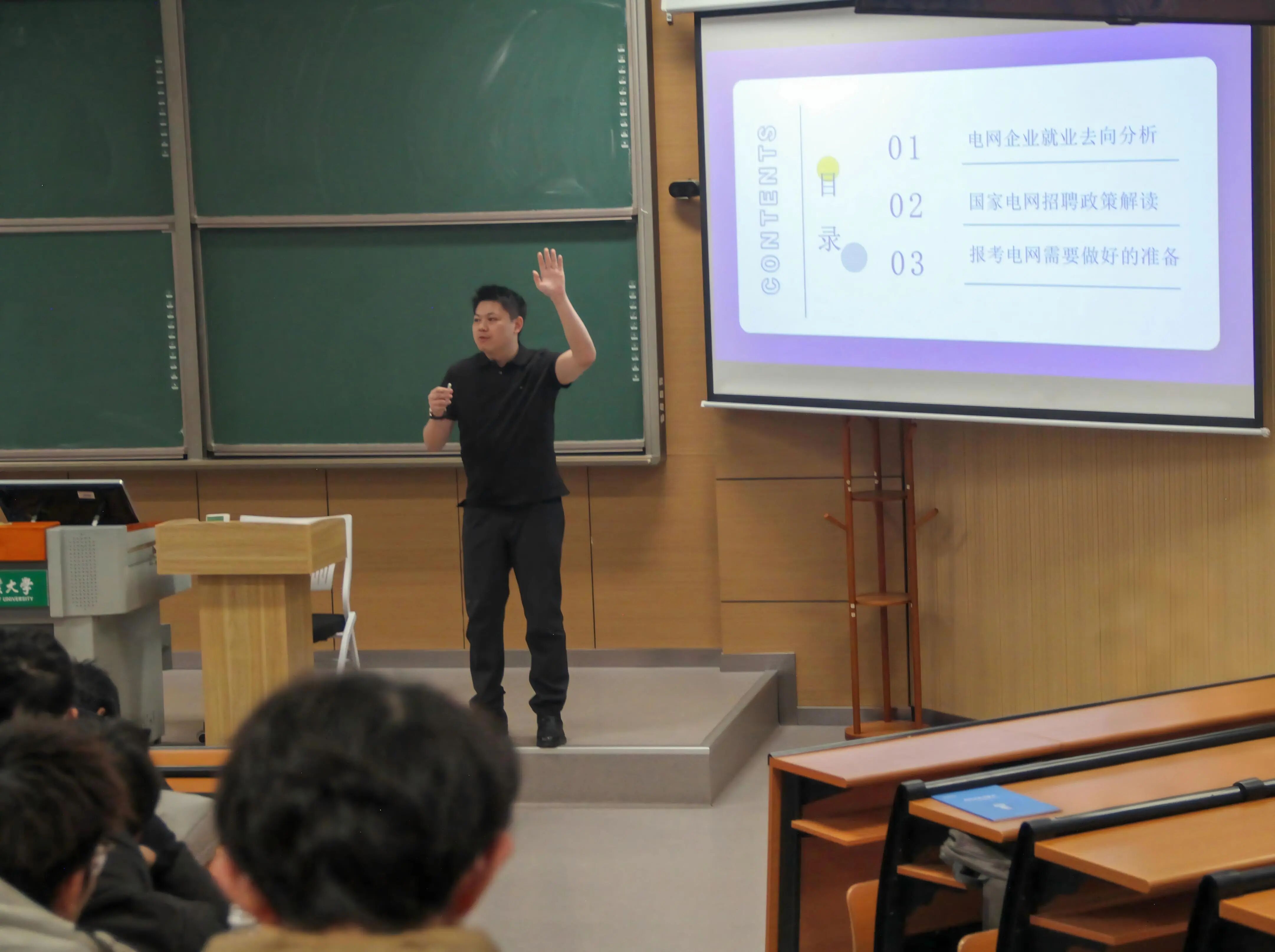 为切实提升员工就业竞争力,帮助计控学子全面洞悉国家电网招聘政策与考试要点,科学规划备考路径,11月14日晚18:30,英国365集团公司官网在锦绣楼T301教室举办国家电网就业指导专题讲座。本次活动特邀思格教育总经理葛瑞安先生担任主讲,为公司学子送上了一场兼具专业性与实用性的就业“干货盛宴”。