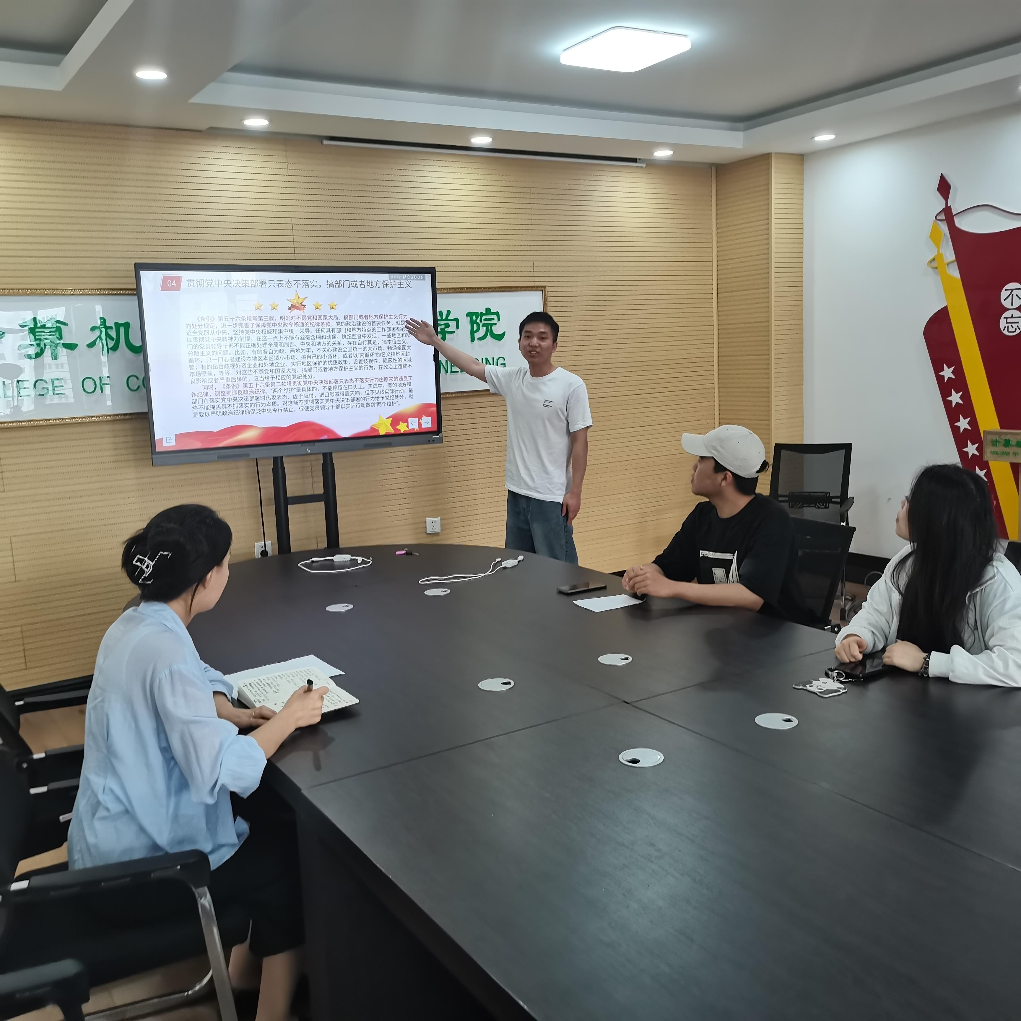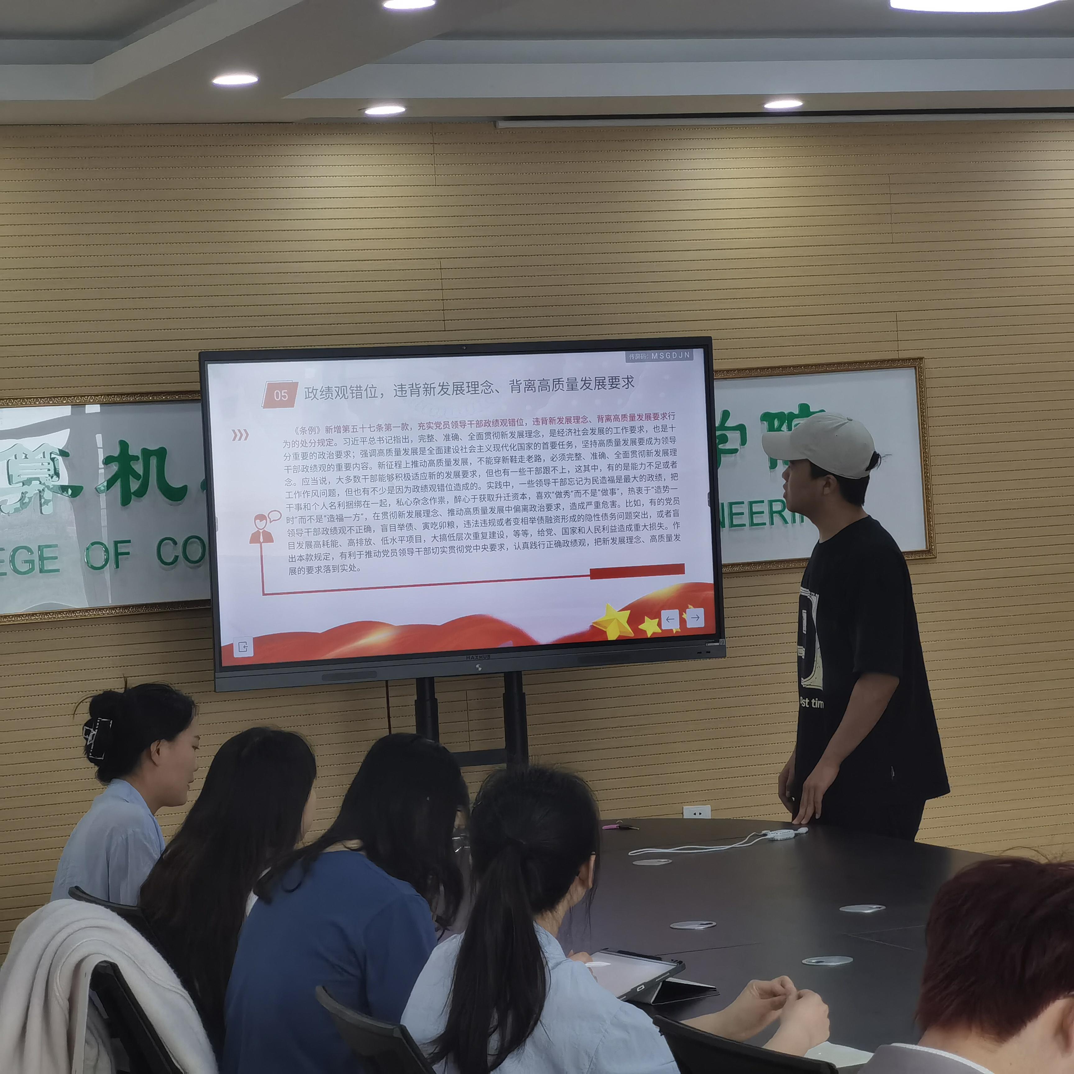 会议开始,由蒋蕊、黄昌胜、于泽三位同学分别对《条例》内容逐章逐条领学,围绕《条例》修订的特点、党的纪律建设地位和作用、在实际工作中如何贯穿落实《条例》等方面进行深入交流研讨。