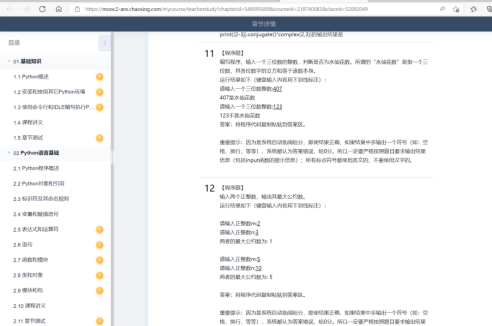 超星泛雅教学平台中,课程“章节”是员工线上学习的重要园地,本课程以每次课的学习目标、学习任务和活动、学习评价三部曲,进行线上课程的设计。把原来线下“学”为中心的课堂教学环节和教学活动尽可能逻辑性地展现在线上。每一章节都提供在线视频的讲解,提供在线学习资源。章节内容如图2所示。章节结束还提供章节测验,通过章节测验主要考察知识目标的达成度,特别是对于编程题,实现了系统自动评判加教师人为干预的方式,将教师从机械的批阅劳动中解放出来。章节测验内容如图3所示。