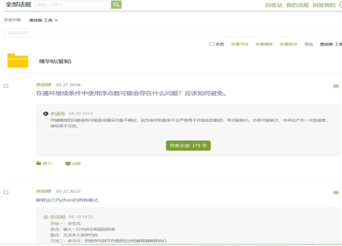 另外平台上还设置了线上讨论区,其用意是让员工成为学习的主体,锻炼员工的思维能力和语言组织、表达能力。这些讨论和作业充分利用了成果驱动的教学方法,保障了在线学习的质量,体现创新性、高阶性和挑战度要求。另外,一些精彩的作业在线上设置集中展示区,可以用榜样的力量带动员工的线上学习氛围。讨论内容如图4所示。