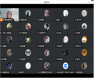 本课程章节内容都是提前几天开放,在员工课前自学线上学习内容,部分先进员工完成讨论和作业的基础上,课程按照教学课表安排的时间,借助腾讯会议进行课程的直播授课。为保证线上教学质量,居家教学的老师们,与线下教学一样,以热情饱满的状态面对镜头,与员工们云端相聚。如图6所示。与员工讨论专题学习的重点、难点,帮助员工深入理解前期线上自学内容,并提供理论联系实际的程序案例分享,是一种线上半翻转式的教学模式。直播期间选择和点评已提交同学的作业和讨论区的讨论,节省了现场思考的时间。通过点评,促使员工反思自己的学习收获。最后进入课后的继续讨论和作业的互评阶段。