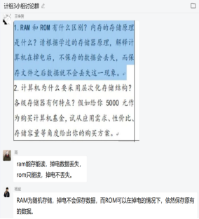 此教学环节是实现能力培养的重要环节,员工通过分组讨论、查阅资料形成对问题的见解,在理解基础知识的同时,能够结合实际应用给出小组的问题答案或者解决方案。通过问卷调查显示,员工非常喜欢这种教学方式,并乐于参与其中。线上课堂研讨情况如图6所示。