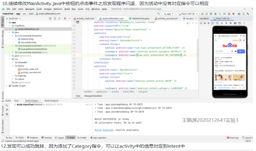 在理论课上,通过直播方式利用PPT讲解理论,进行案例分析,并通过现场操作等方式来进行授课。在实验课上,主要面临两个问题:第一,部分同学自身电脑由于各种原因无法成功安装软件,针对这一问题,派遣一名研究生担任助教工作,在上课时间开放机房进行管理,保证这部分同学能够顺利进行实验(图4)。第二,所使用的Android Studio软件版本更新频繁,经常会由于软件版本问题而导致实验运行失败。为避免由于软件版本问题出错,在每次实验任务发布之前,授课教师会重新做一遍实验内容,并细化实验步骤,尽量减小不能线下亲手指导而带来的影响,实验指导步骤和员工报告如图5-图7所示。