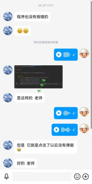 在员工进行实验的过程中,教师全程在线进行指导,对于共性问题在线进行解答和说明。另外,员工进行实验的时间相对比较分散,尽量做到及时响应,解决员工提出的问题,与部分员工进行互动答疑的图片如图9-图12所示。