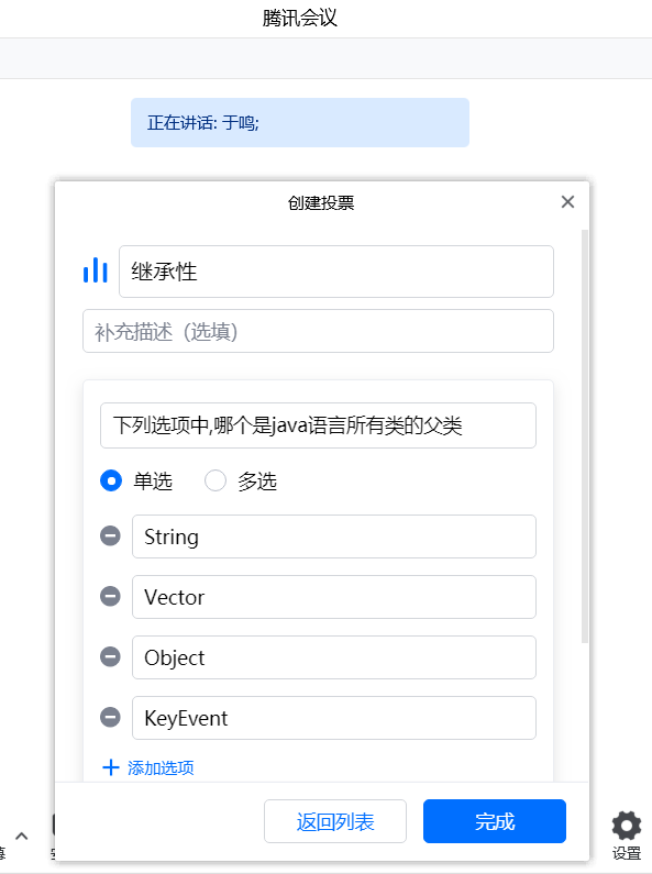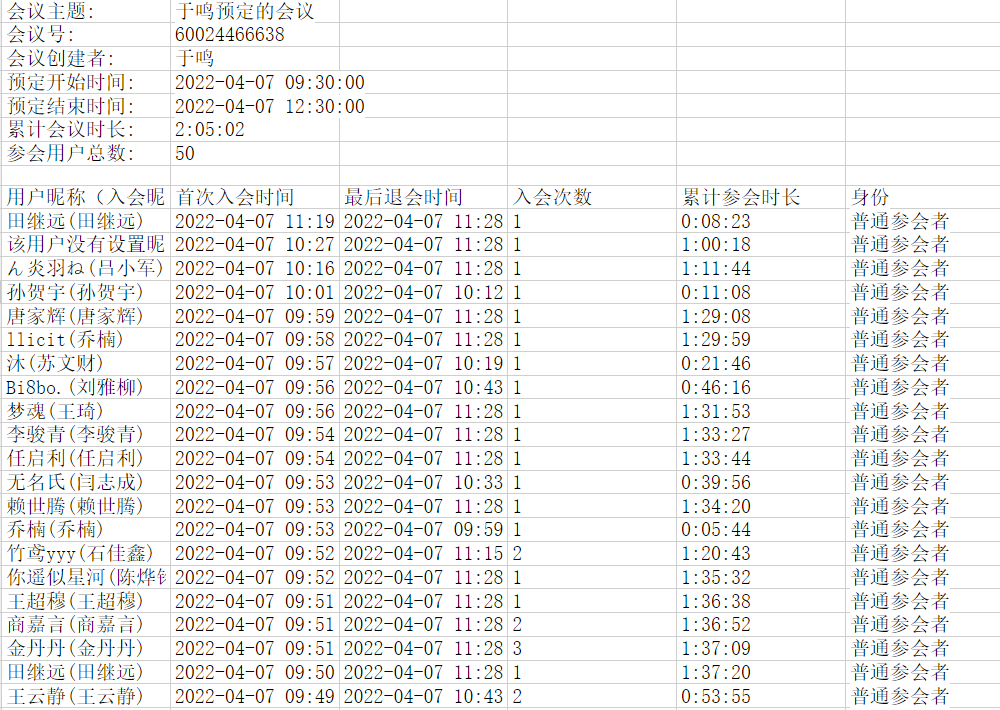 (2)分解课堂知识点,注重员工获得感。利用腾讯会议进行授课直播,直播时要注意知识点讲解过程中的目标明确,思路清晰。在课堂上利用腾讯投票功能进行知识点答题交互,利用直播间留言功能进行课堂问题交互;也可以与员工语音直接交流。课后导出会议参会情况,分析员工听课情况。