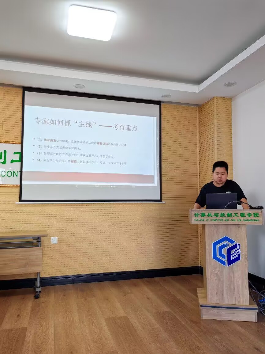 之后,李文超副主任和全体教师分享南昌工程教育认证培训内容以及心得体会。剖析专业认证过程中坚持“主线”以及守住“底线”的基本原则以及重点考察内容,并介绍如何在专家查证视角下的进行有效举证,在专家进校审查过程中专家的审核判据以及审查过程中的常见问题。
