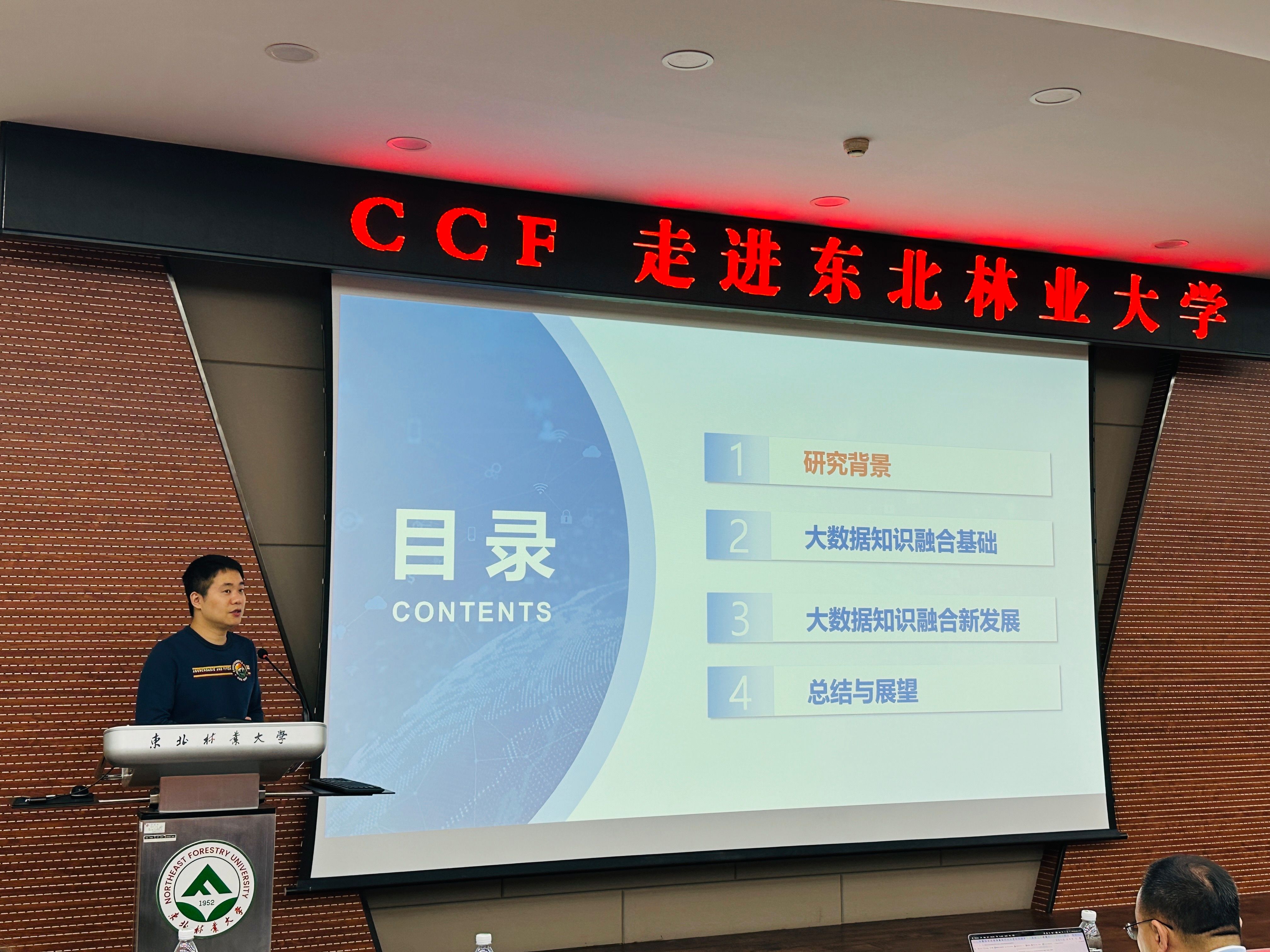 赵翔教授以“大数据知识融合前沿进展”为题,从知识工程发展历程出发,系统梳理了大数据知识融合的基础理论与知识图谱构建、冲突消解等关键技术。他重点探讨了时序与多模态知识图谱融合路径,以及大语言模型在知识融合中的创新应用,并对参数化知识融合、检索增强生成与推理融合等前沿方向作出展望,为领域研究提供了清晰的演进框架。