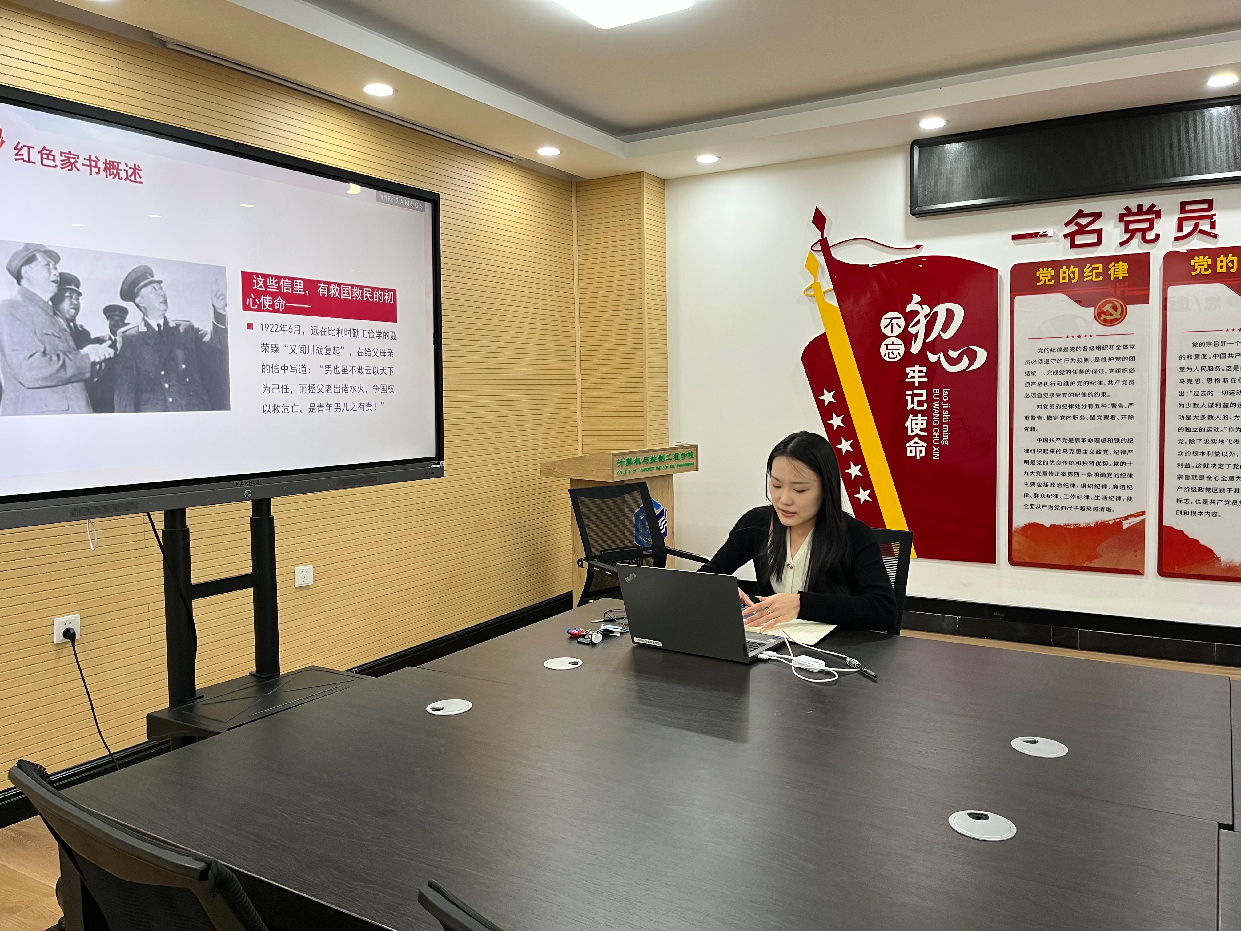 会上,巴欣怡分享了一本收录了旧民主主义革命和新民主主义革命期间烈士的家书——《红色家书》。这些信里有救国救民的初心使命,有心系同胞的赤子情怀,有舐犊情深的谆谆教诲,承载着人格和亲情,蕴藏着智慧和力量,是我们理解不忘初心的重要史料,也为我们学习老一辈革命家的高尚品格和道德风范提供了生动教材。特别以史砚芬、骆何民和夏明翰三位烈士的红色家书进行倾情分享,从中提炼出了《红色家书》中的三个“jing”:“境”——高远境界,牢固树立崇高的理想信念;“镜”——清醒如镜,牢固树立正确的是非判断;“净”——干净做事,牢固树立纪律和规矩意识。