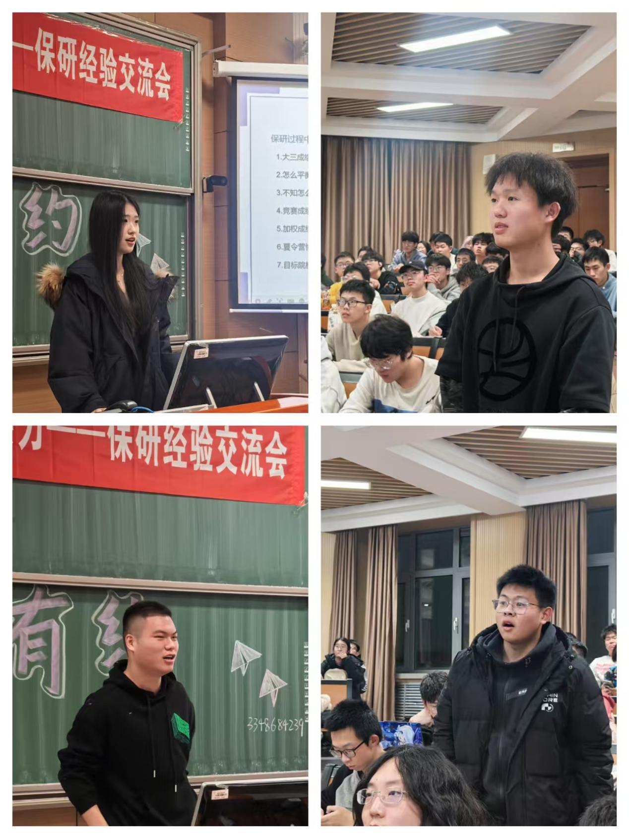互动环节,同学们积极地提出自己的疑惑,学长学姐们耐心地进行了解答。本次交流分享会充分发挥了优秀员工的示范引领作用,使同学们不仅感受到了学长学姐们积极向上、勇于探索的精神风貌,更让他们对保研流程及相关政策有了更加深入的了解。相信同学们在这次分享会中都有所收获,对自己日后的学习生活有了更加清晰的规划。