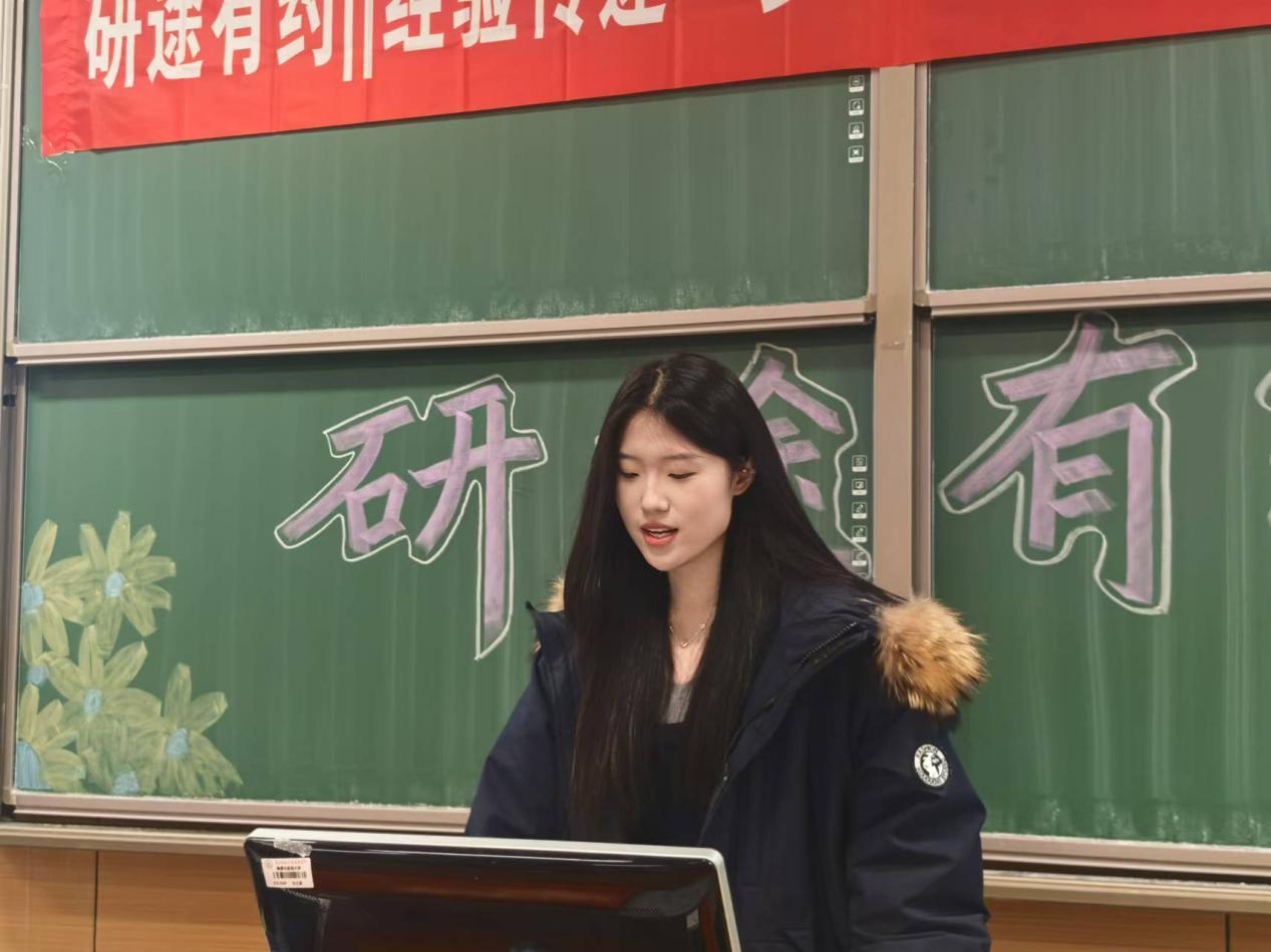 王文哲围绕竞赛经验、推免流程和规划建议三个方面与同学们分享自己的经验。作为“大唐杯”国家级一等奖的获得者,她向同学们分享了她的比赛经验,细致入微地对推免流程进行了讲解。她对同学们提出了一些未来学习生活规划的建议,同时对保研过程中一些常见的问题提出了自己的一些解决办法,为同学们日后学习生活提供参考。