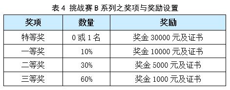 3.挑战赛设特等奖1名,设一、二、三等奖若干,具体设置见表3。