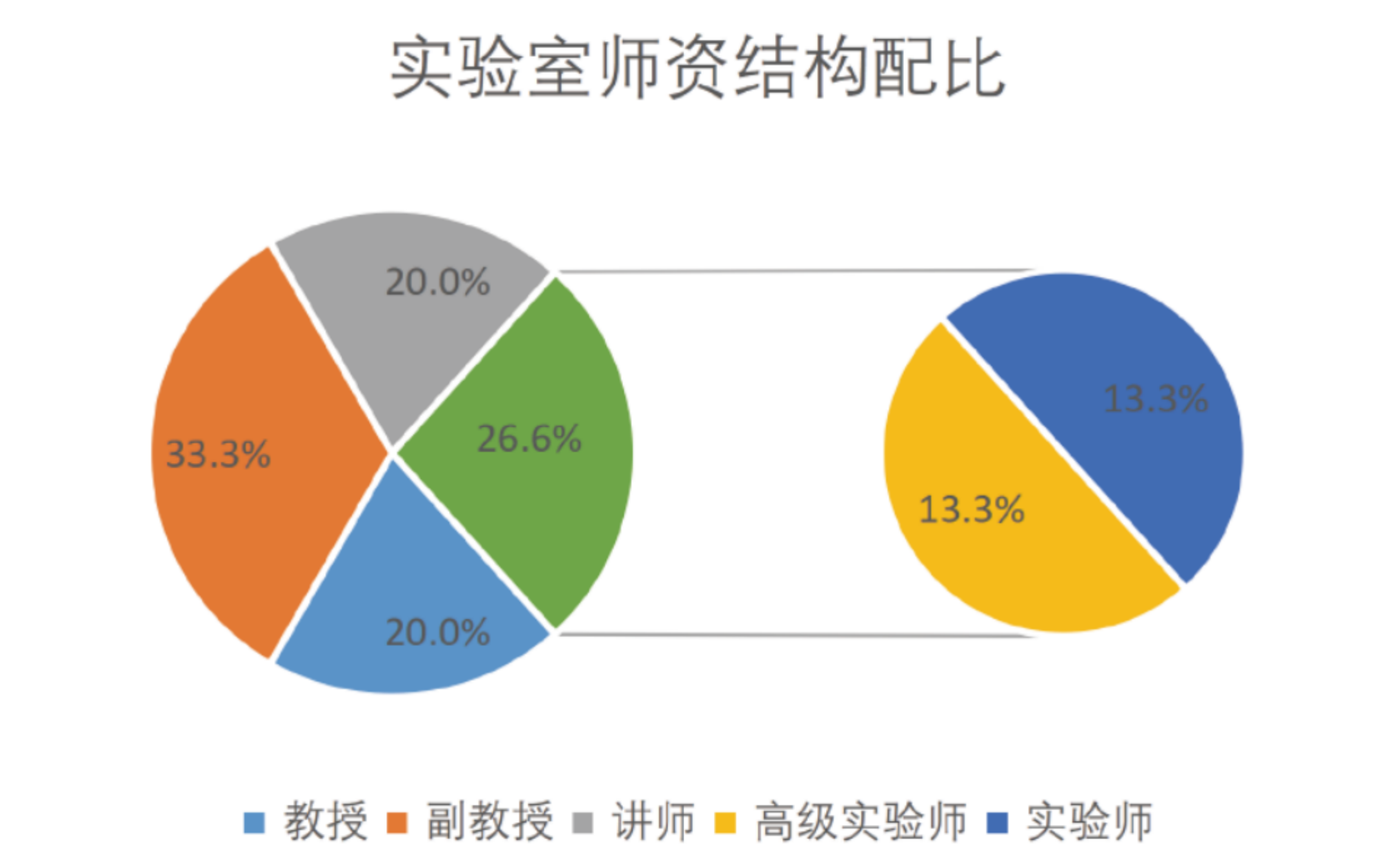 实验室现有兼职实验教师11人、专职实验师4人。其中教授3人,副教授5人,讲师3人,高级实验师2人,实验师2人,实验室人员结构合理,教学经验丰富,团队力量雄厚。